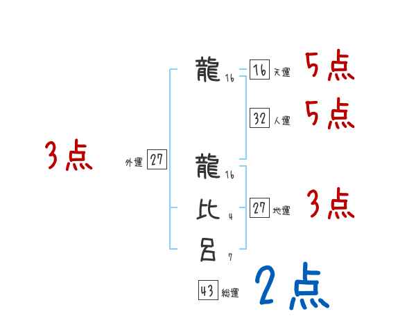 天運![]() | 龍龍比呂さんの天運は16画の5つ星!人望が厚く大きく発展する。逆転成功が見える。 家系が持つ宿命的な運勢を表します。祖先から受け継いだ苗字ですので自分の力が及びません。家柄を象徴します。 |
