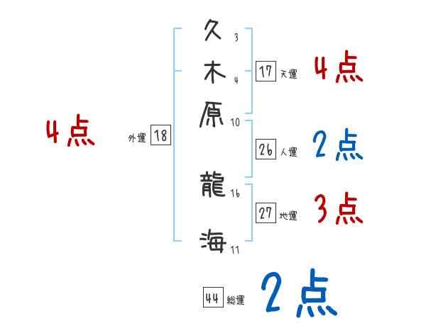 久木原龍海さんの画数の鑑定結果