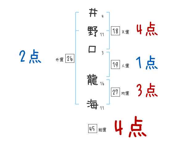 井野口龍海さんの画数の鑑定結果