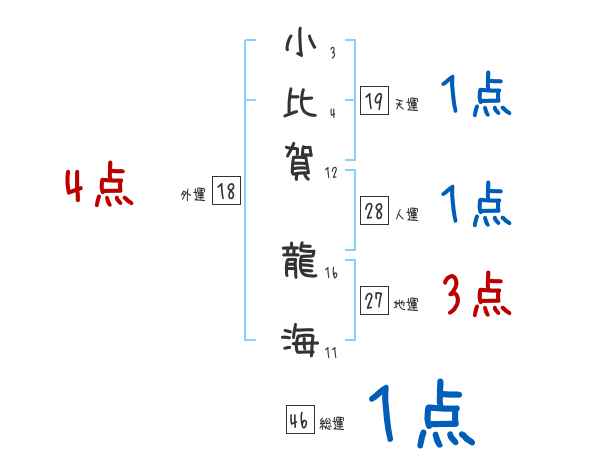 小比賀龍海さんの画数の鑑定結果
