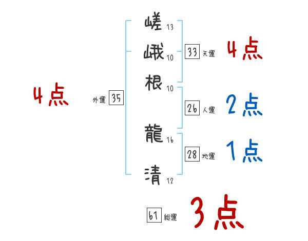嵯峨根龍清さんの画数の鑑定結果
