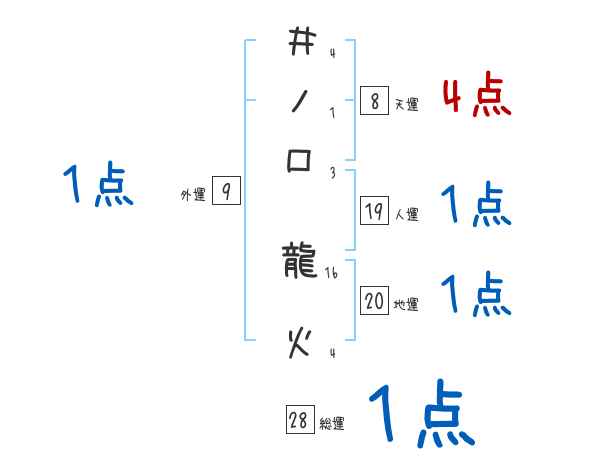 総運![]() | 井ノ口龍火さんの総運は28画の1つ星!家庭環境に注意。スポーツで活躍できる能力があるかも。 あなたの人生を表す1番重要な運勢です。生涯を通じて影響する総合運となり、主に50歳以降の晩年期に影響を及ぼします。 |