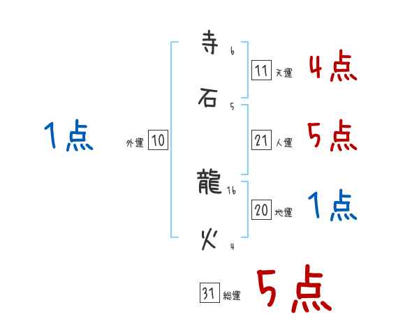 寺石龍火さんの画数の鑑定結果