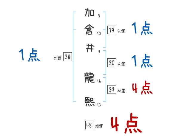 加倉井龍熙さんの画数の鑑定結果