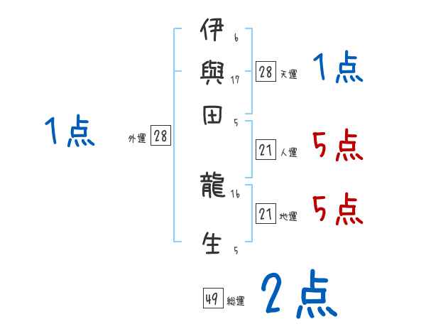 伊與田龍生さんの画数の鑑定結果