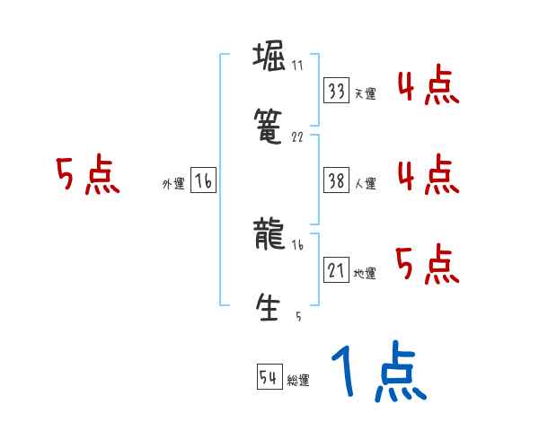 堀篭龍生さんの画数の鑑定結果