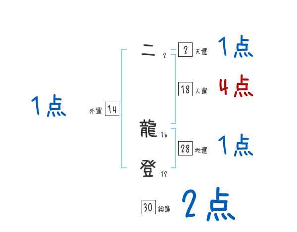 二龍登さんの画数の鑑定結果