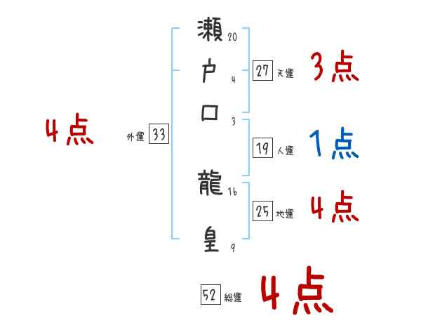 瀬戸口龍皇さんの画数の鑑定結果
