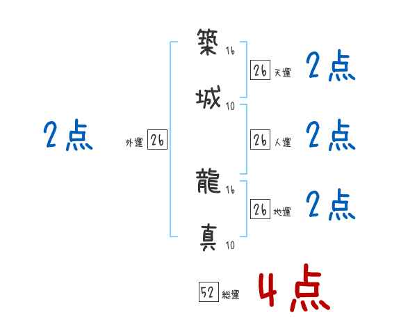 外運![]() | 築城龍真さんの外運は26画の2つ星!波瀾万丈かも。信頼できる人を大事にしましょう。 生活面を象徴する運勢です。外部から受ける影響力を表し、結婚運、家庭運や職場、環境への順応性を表します。 |