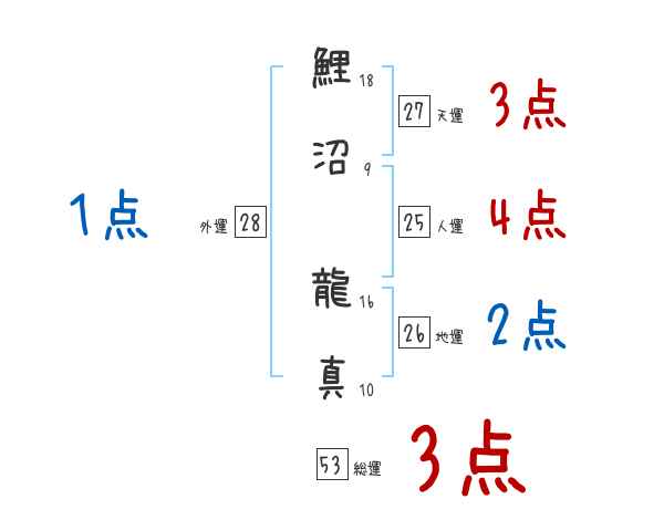 鯉沼龍真さんの画数の鑑定結果