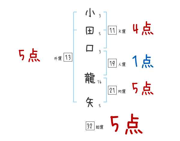 小田口龍矢さんの画数の鑑定結果