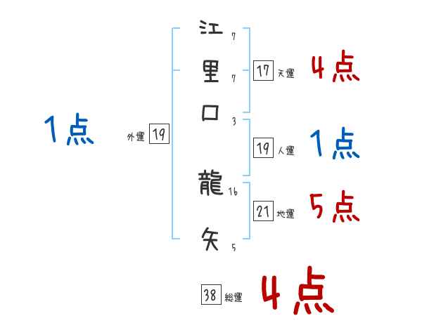 江里口龍矢さんの画数の鑑定結果