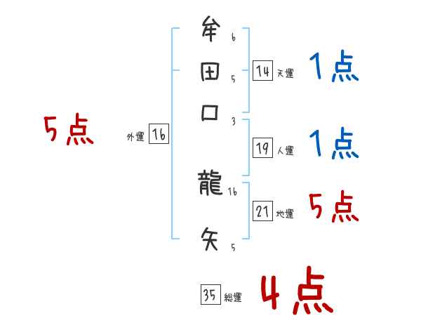 牟田口龍矢さんの画数の鑑定結果