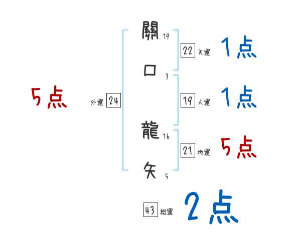 天運![]() | 關口龍矢さんの天運は22画の1つ星!努力することが苦手ないっぽう手先が器用。芸術性にも優れる。 家系が持つ宿命的な運勢を表します。祖先から受け継いだ苗字ですので自分の力が及びません。家柄を象徴します。 |
