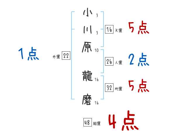 小川原龍磨さんの画数の鑑定結果