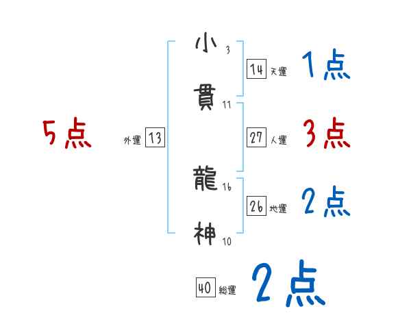 小貫龍神さんの画数の鑑定結果