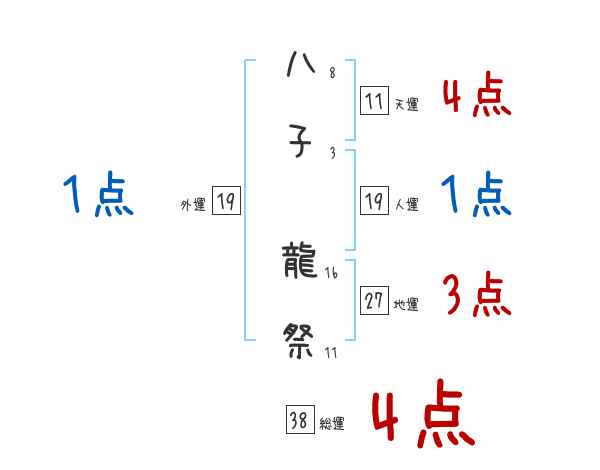 八子龍祭さんの総運は38画の4つ星