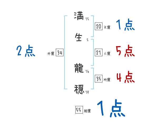 満生龍穏さんの画数の鑑定結果