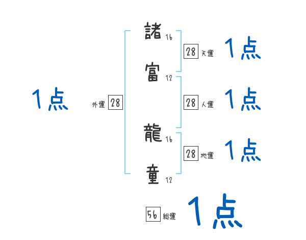 諸富龍童さんの画数の鑑定結果
