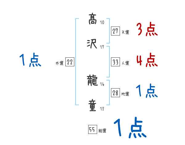 髙沢龍童さんの画数の鑑定結果