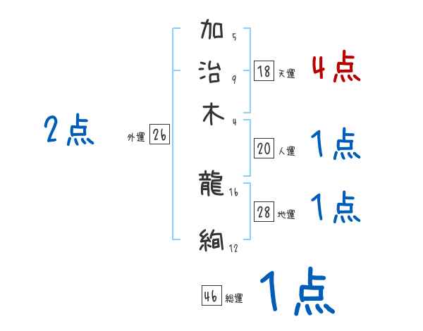 加治木龍絢さんの画数の鑑定結果