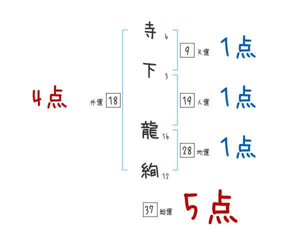 寺下龍絢さんの画数の鑑定結果