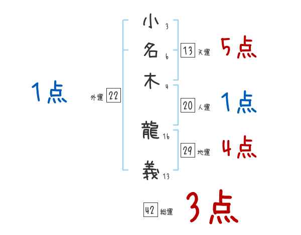小名木龍義さんの画数の鑑定結果