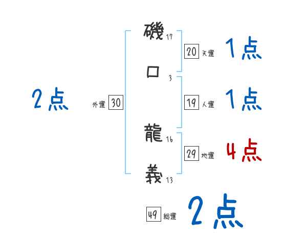 磯口龍義さんの画数の鑑定結果
