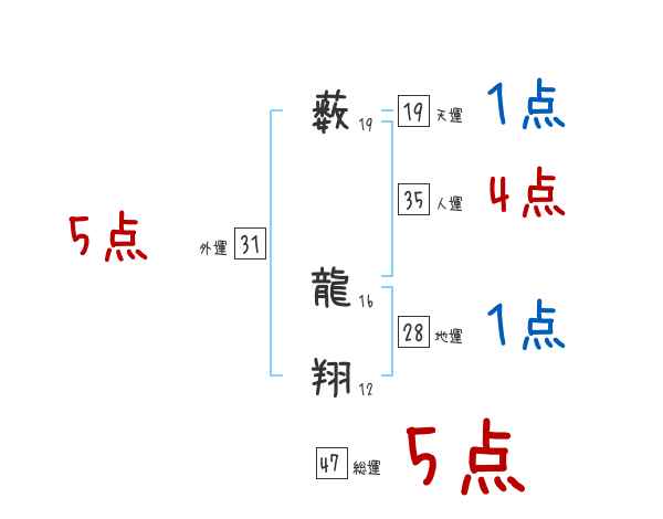 薮龍翔さんの画数の鑑定結果