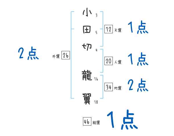 小田切龍翼さんの画数の鑑定結果