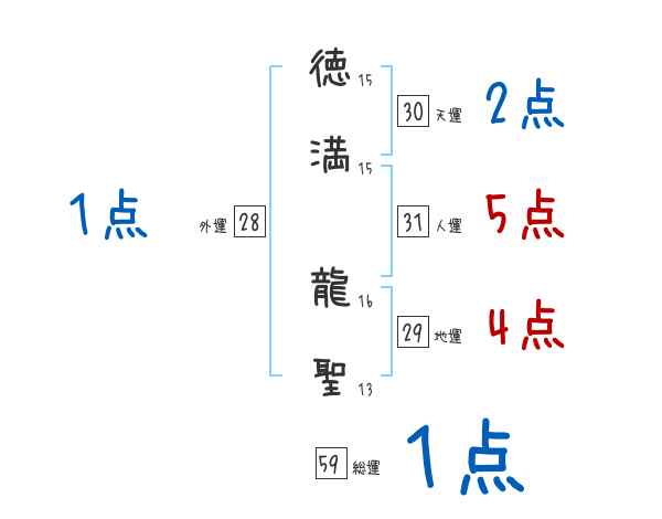 徳満龍聖さんの画数の鑑定結果