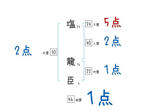 塩龍臣さんの画数の鑑定結果