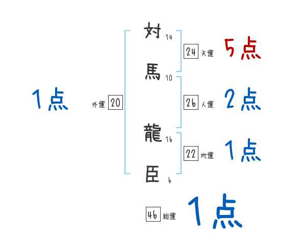 対馬龍臣さんの画数の鑑定結果
