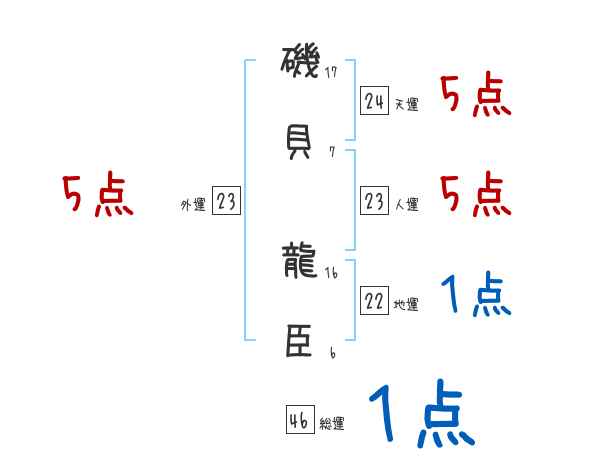 磯貝龍臣さんの画数の鑑定結果