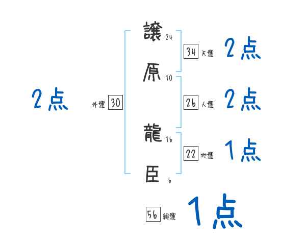 譲原龍臣さんの画数の鑑定結果