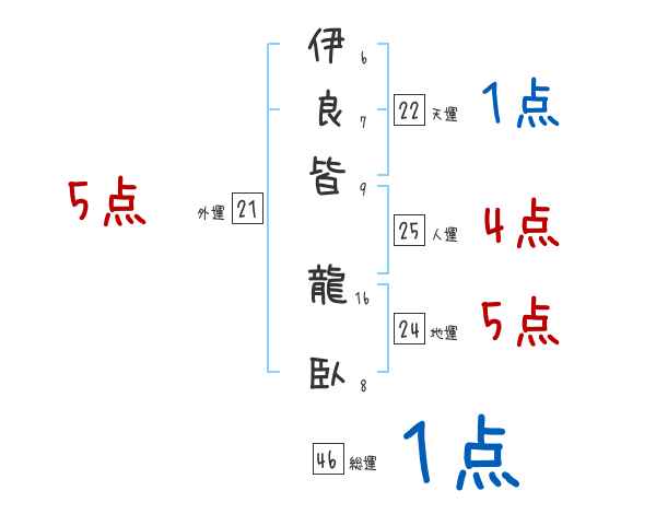 伊良皆龍臥さんの画数の鑑定結果
