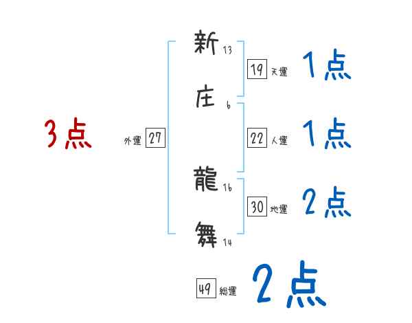 新庄龍舞さんの画数の鑑定結果