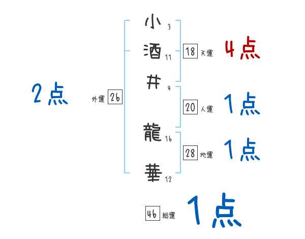 小酒井龍華さんの画数の鑑定結果