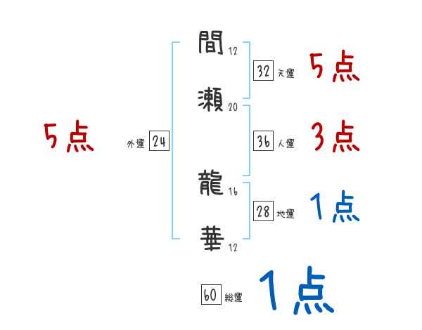 間瀬龍華さんの画数の鑑定結果