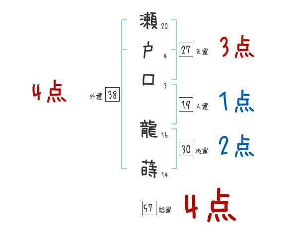 瀬戸口龍蒔さんの総運は57画の4つ星