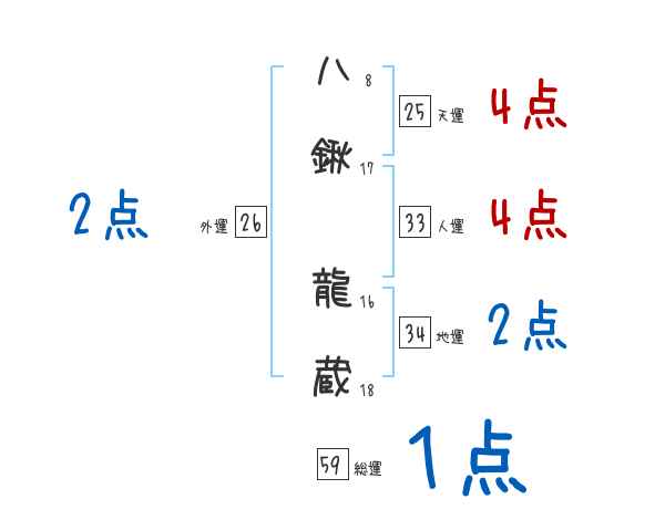 八鍬龍蔵さんの画数の鑑定結果
