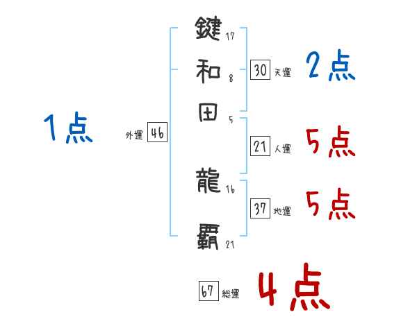 天運![]() | 鍵和田龍覇さんの天運は30画の2つ星!浮き沈みの激しさに注意しましょう。 家系が持つ宿命的な運勢を表します。祖先から受け継いだ苗字ですので自分の力が及びません。家柄を象徴します。 |