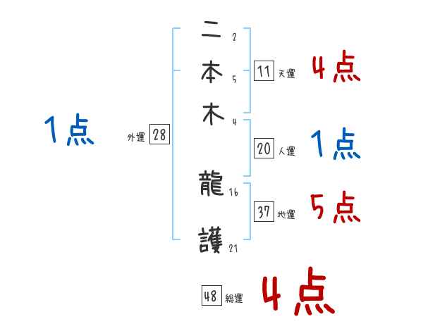 二本木龍護さんの画数の鑑定結果