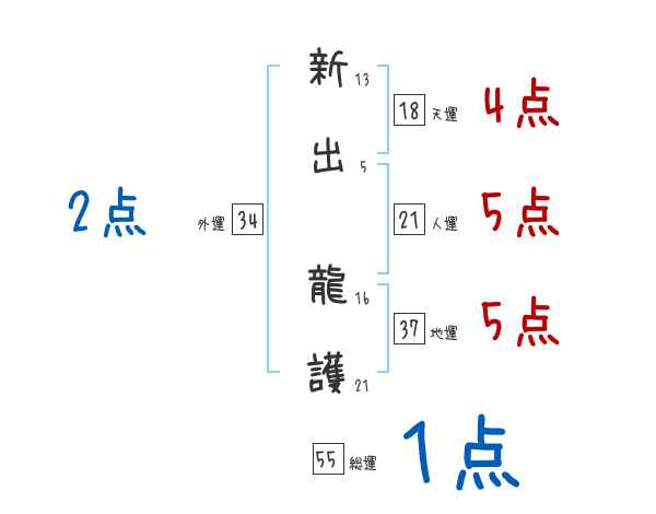 新出龍護さんの画数の鑑定結果