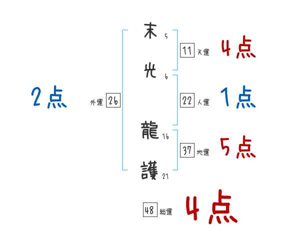末光龍護さんの画数の鑑定結果