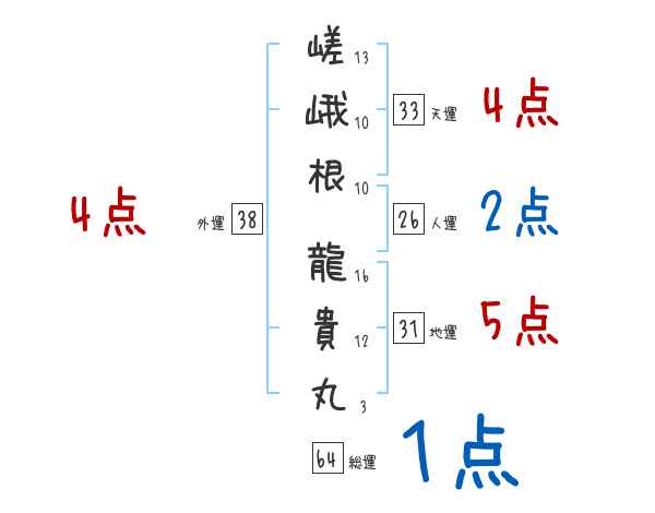 嵯峨根龍貴丸さんの画数の鑑定結果