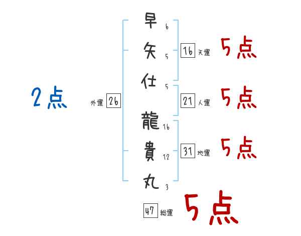 早矢仕龍貴丸さんの画数の鑑定結果