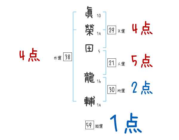 眞榮田龍輔さんの画数の鑑定結果