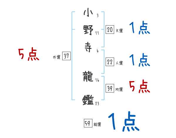 小野寺龍鑑さんの画数の鑑定結果
