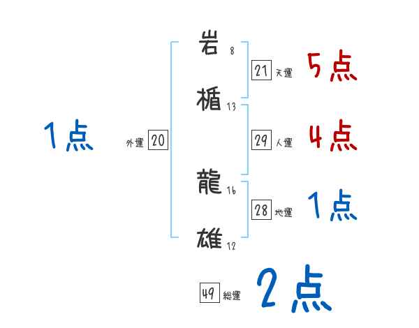 岩楯龍雄さんの画数の鑑定結果